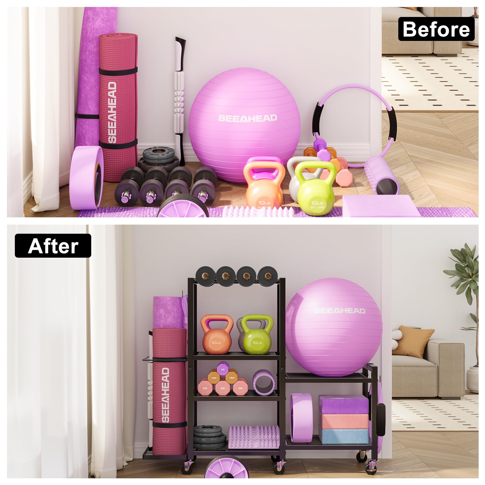 - Space-Saving Solution for a Tidy Home Gym: This Gym Storage Organizer maximizes your home gym space, helping you neatly organize your fitness equipment. Whether it’s yoga mat storage, dumbbell storage, or workout equipment organization, this rack offers an efficient solution for optimizing your home gym environment