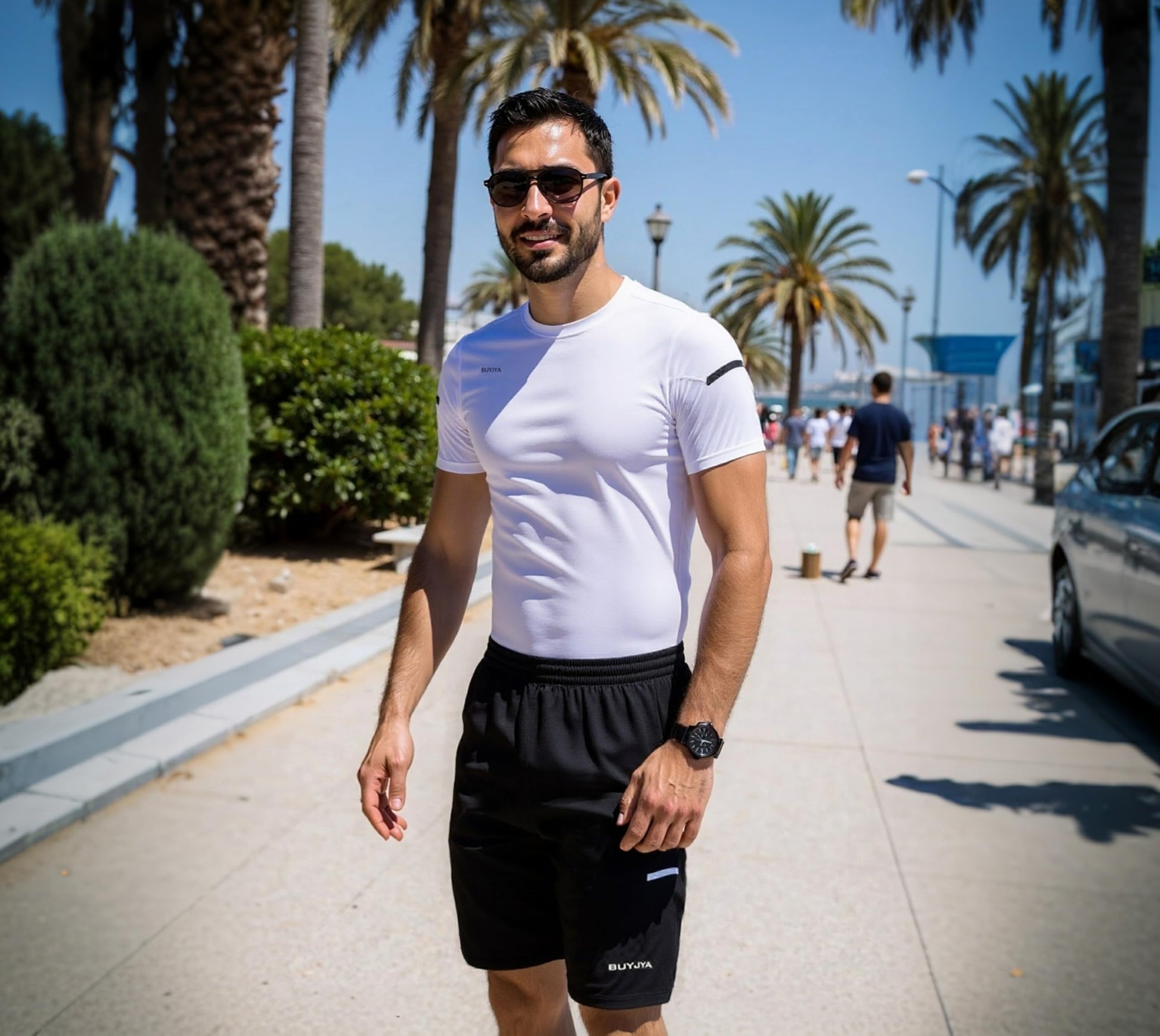 BUYJYA Men's Workout Clothes Athletic Shorts Shirt Set 3 Pack Basketball Football Training Running Gym Christmas gifts