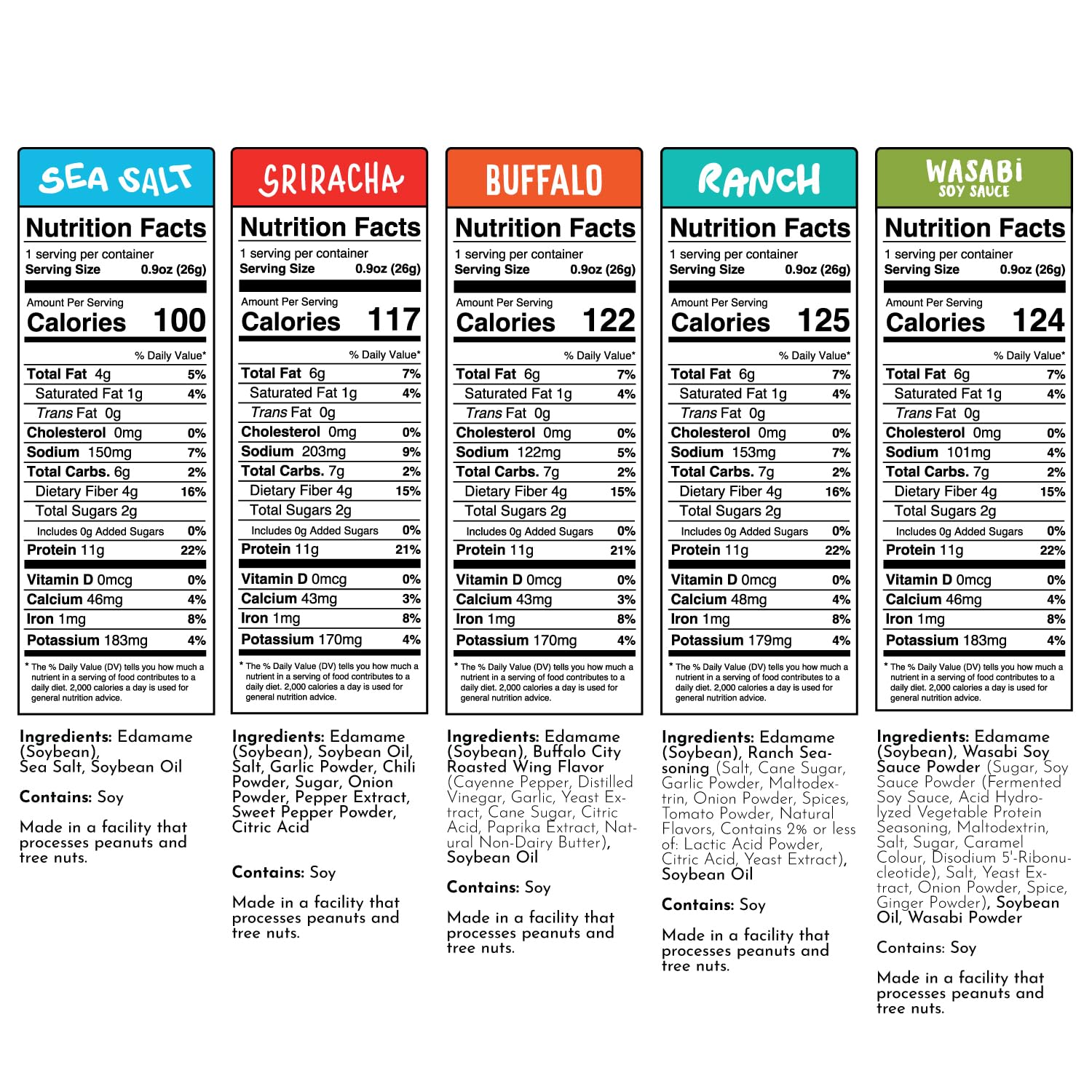- HIGH PROTEIN SUPER-SNACK: Packed with 11 grams of complete plant based protein in a convenient individual wrapped 125 calorie snack pack perfect for the gym, as office snacks, or even a school lunch snack for kids! Delicious and bold flavors of Sea Salt, Ranch, Sriracha, Wasabi Soy Sauce, and Buffalo keep everyone coming back for more!